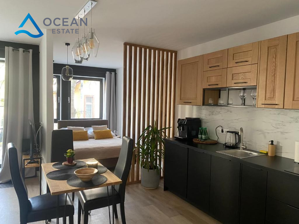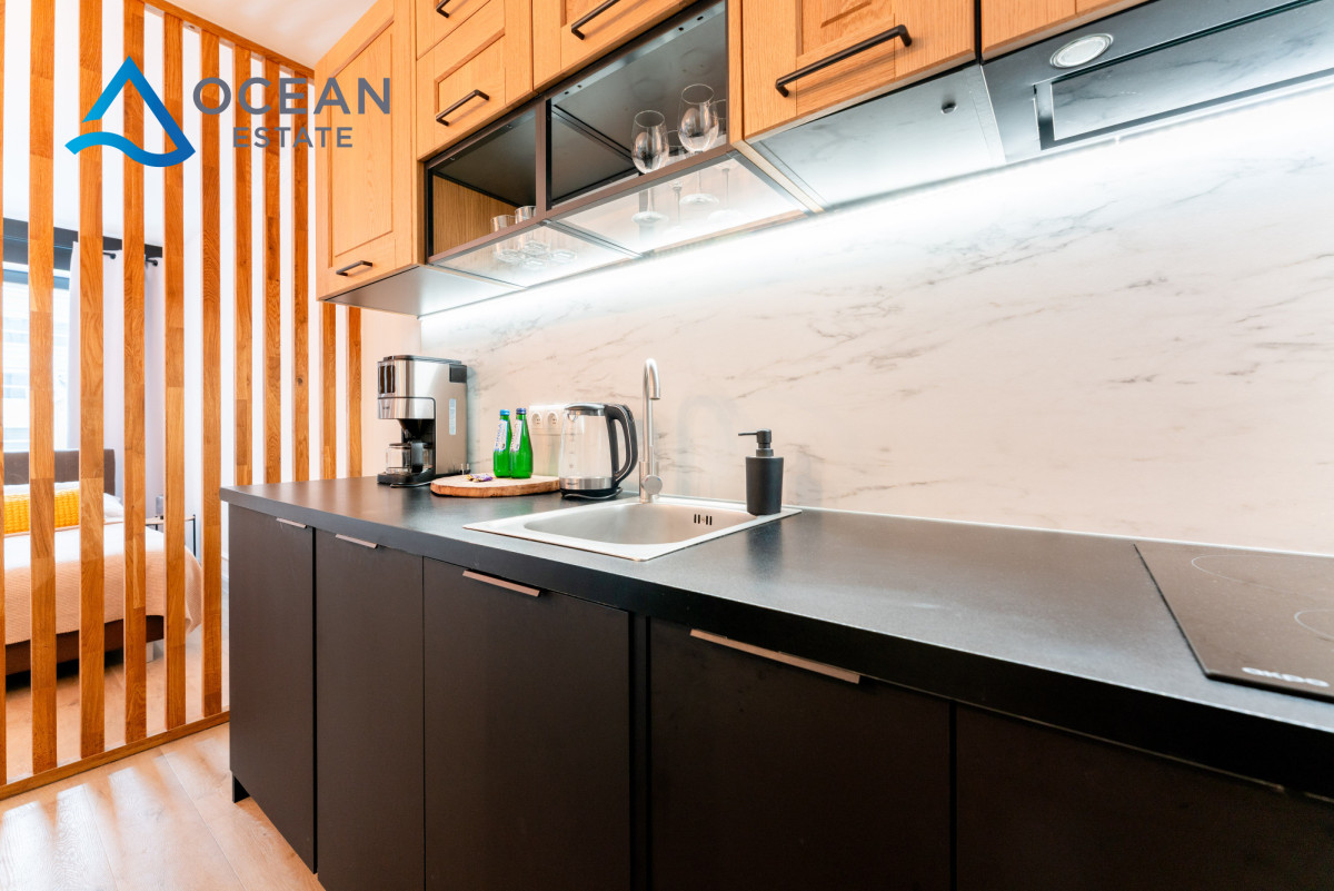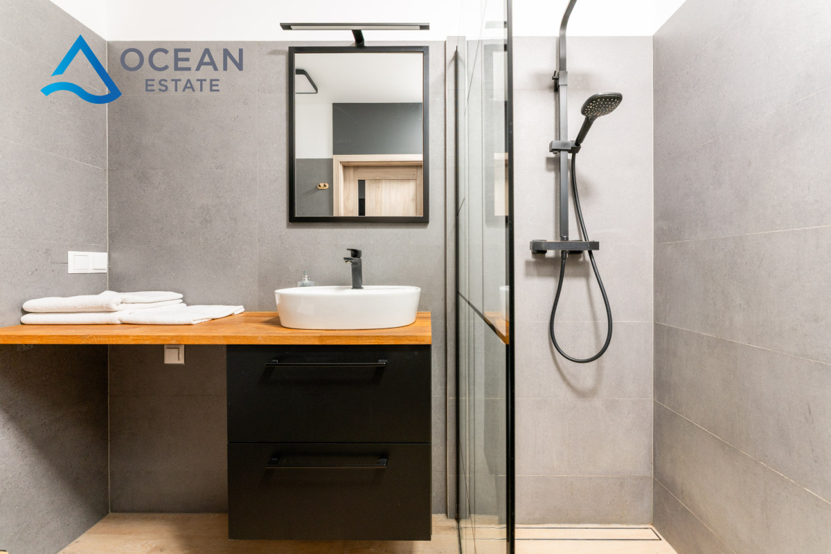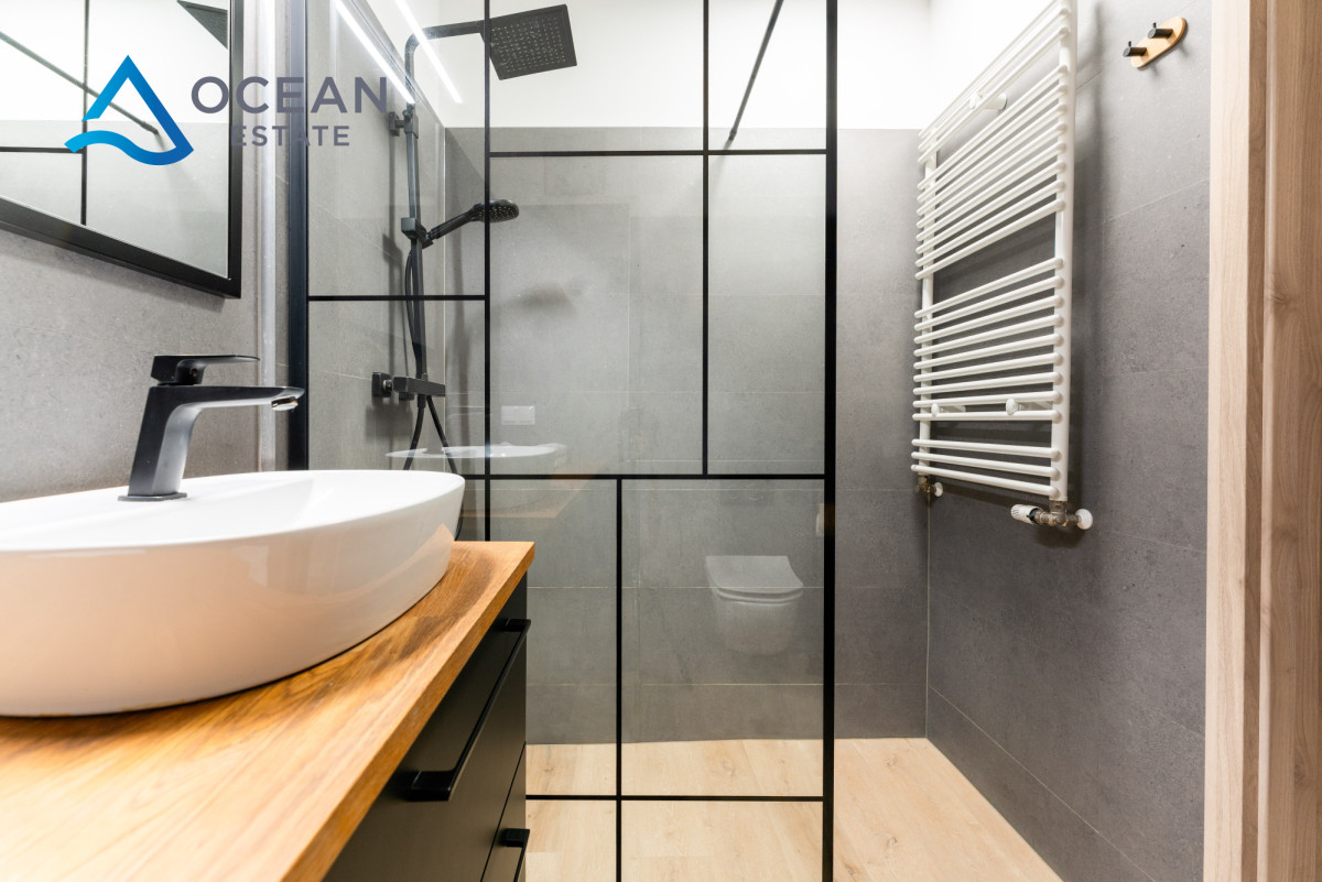 Mieszkanie zostało urządzone w nowoczesnym, ponadczasowym stylu i sprzedawane jest z pełnym wyposażeniem, co czyni je idealnym wyborem zarówno do zamieszkania, jak i jako inwestycję pod najem krótko- lub długoterminowy.